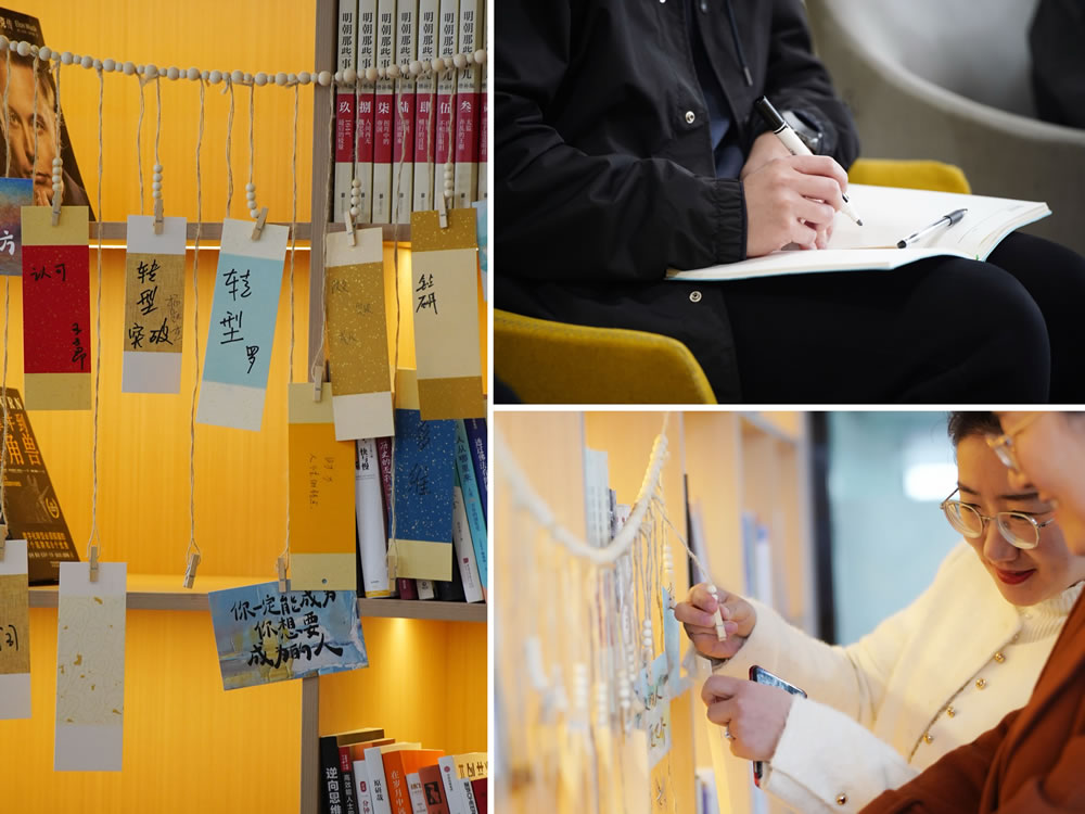 活動(dòng)開場后,每位參與者以“2025年最想突破的職場關(guān)鍵詞”為引,寫下新年的成長期許?;厥褌儗㈥P(guān)鍵詞書簽懸掛于讀書室主題墻,再以"可落地行動(dòng)項(xiàng)+計(jì)劃閱讀書目"構(gòu)建年度閱讀企劃。